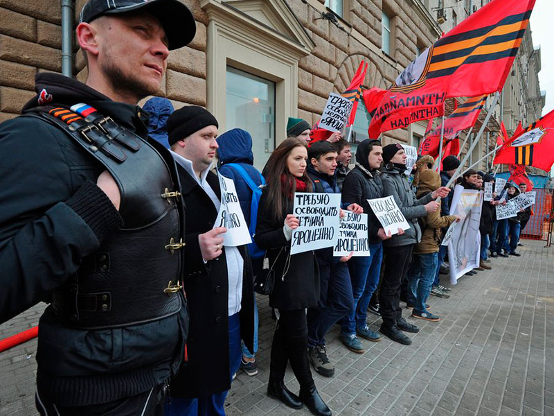 Антиамериканский митинг у посольства США / АГН "Москва" / фото: Любимов Андрей За минувший год отношение жителей России к США резко ухудшилось: по данным исследовательского центра Pew Research, в нынешнем году только 26% опрошенных россиян позитивно относятся к США – против 41% в 2017 году.