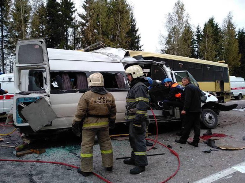 В ДТП с маршруткой и автобусом под Тверью погибли 13 человек