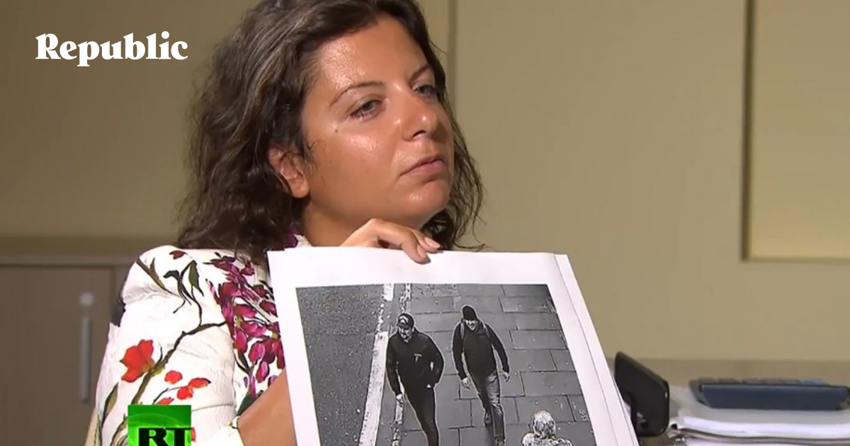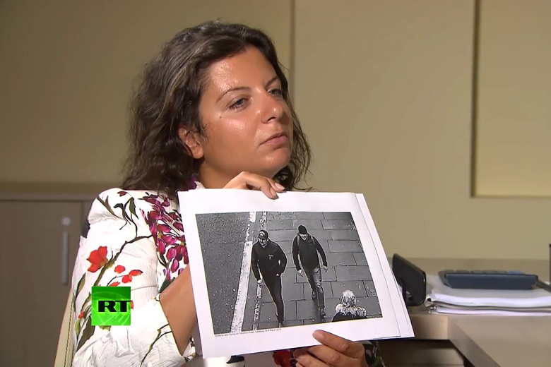 Маргарита Симоньян во время интервью с «Александром Петровым» и «Русланом Бошировым». Фото: Стоп-кадр с видео телеканала RT / ТАСС