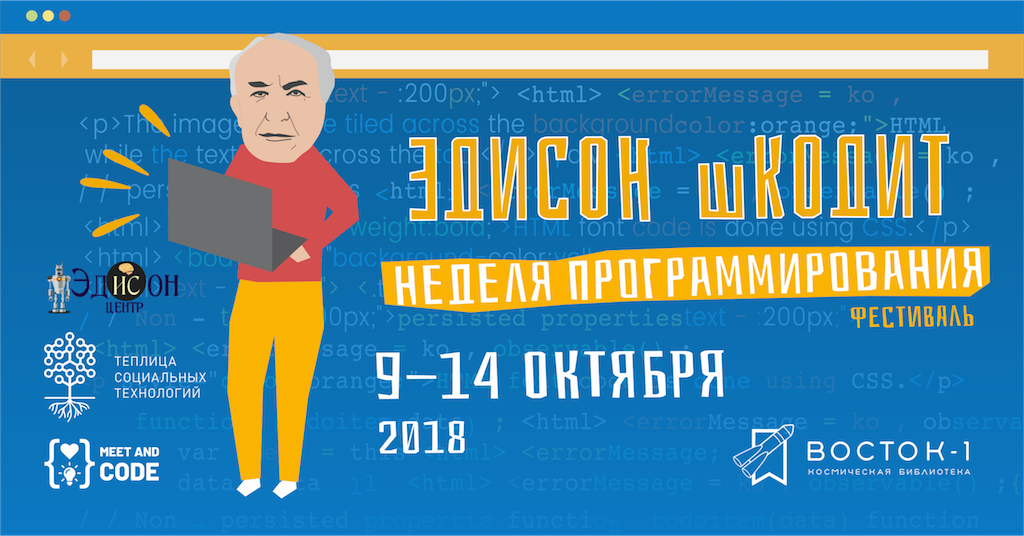 Неделя программирования: в библиотеке востока Москвы пройдет фестиваль программирования «Эдисон шКодит» - Теплица социальных технологий