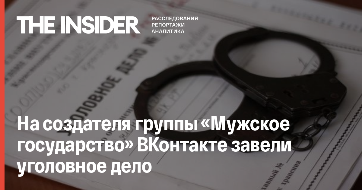 На создателя группы «Мужское государство» ВКонтакте завели уголовное дело