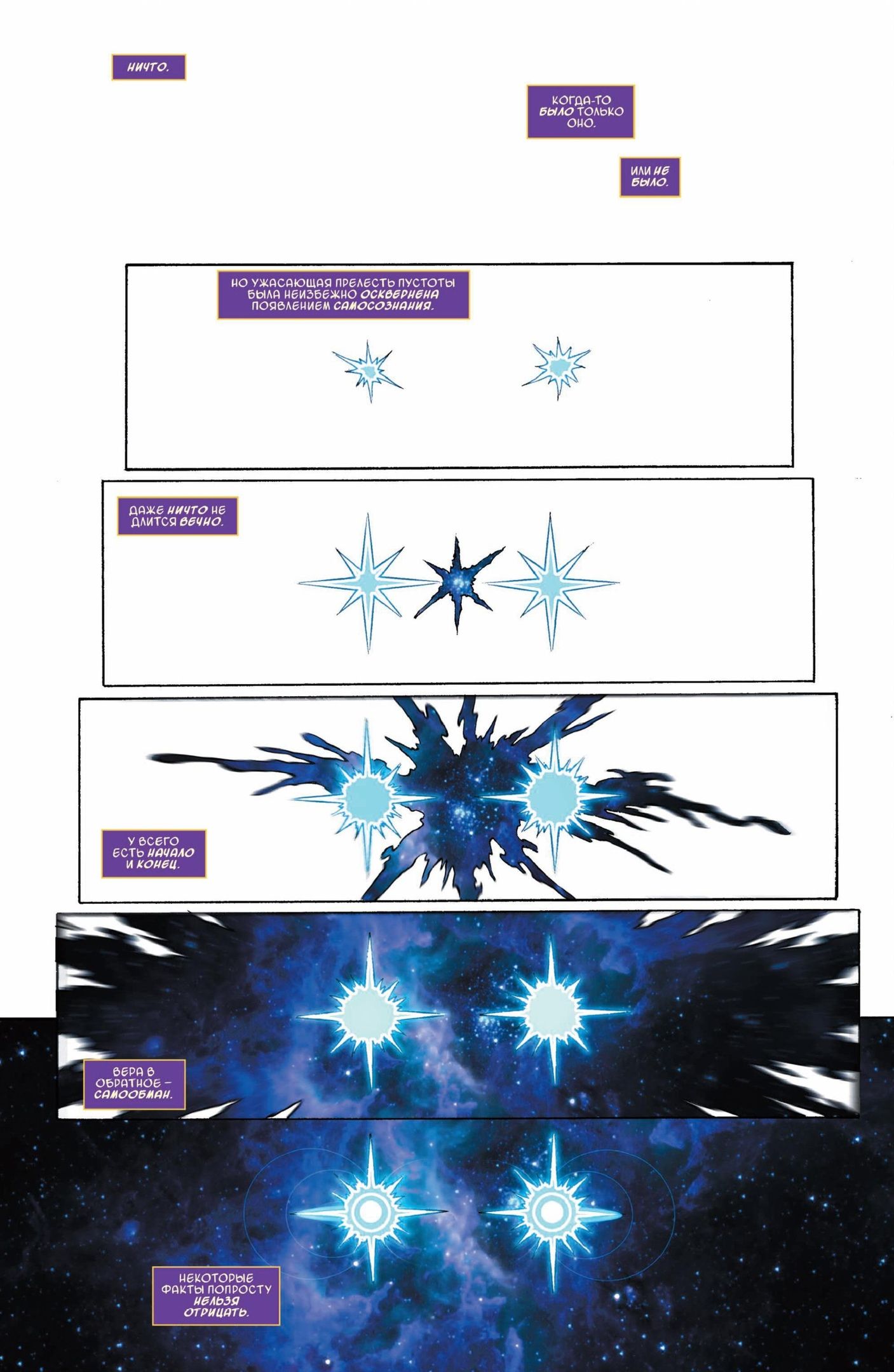 В издательстве «Параллель комикс» выходит комикс «Танос: Откровение бесконечности», написанный и нарисованный Джимом Старлином. Старлин — создатель безумного титана по имени Танос (именно с ним сражались Мстители в фильме «Война бесконечности») и один из важнейших сценаристов и художников Marvel. Его истории определили то, как выглядит космос и его обитатели в комиксах издательства. «Откровение бесконечности» — это история, сочетающая в себе яркую и шумную супергероику с символизмом, философией и размышлениями о ключевых вопросах мироздания. И в этот раз именно Таносу придется спасти всех от того, чем грозит слияние двух параллельных вселенных. «Медуза» публикует фрагмент комикса.