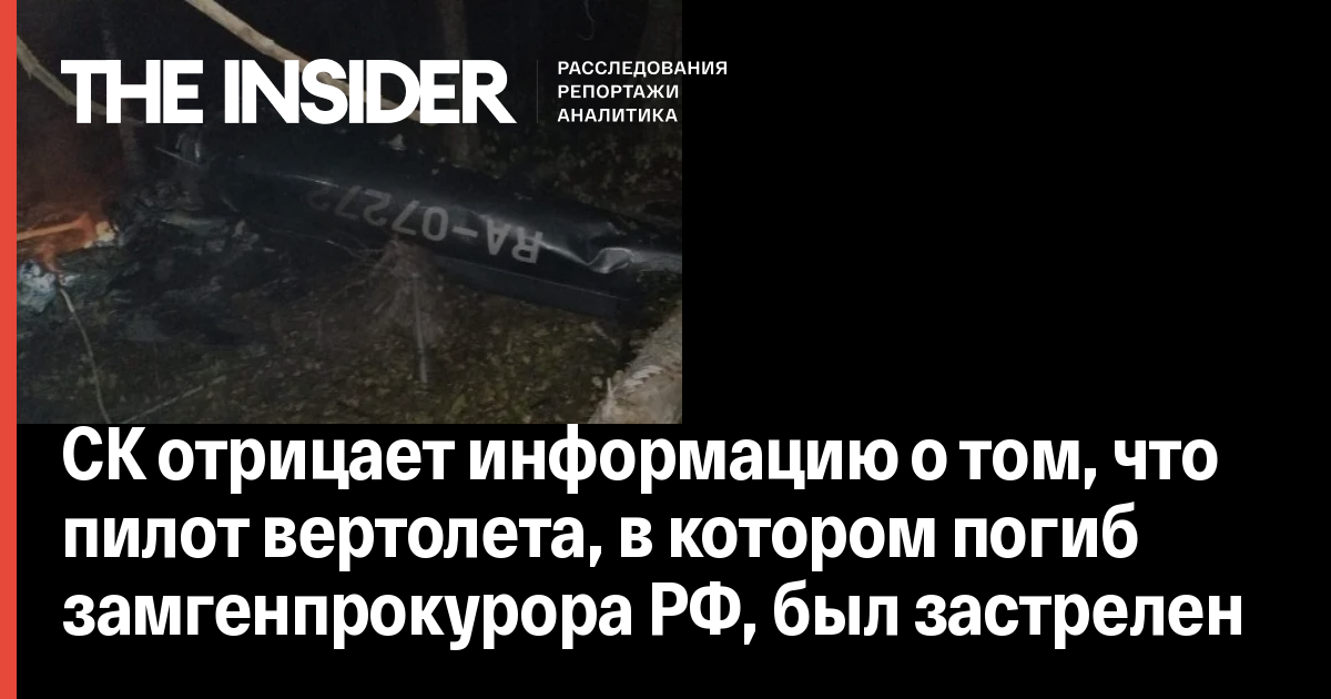 СК отрицает информацию о том, что пилот вертолета, в котором погиб замгенпрокурора РФ, был застрелен