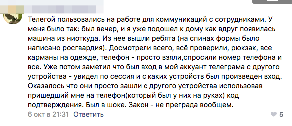 Один из пользователей утверждает, что полицейские после досмотра зашли в его аккаунт в телеграме, узнав номер телефона.