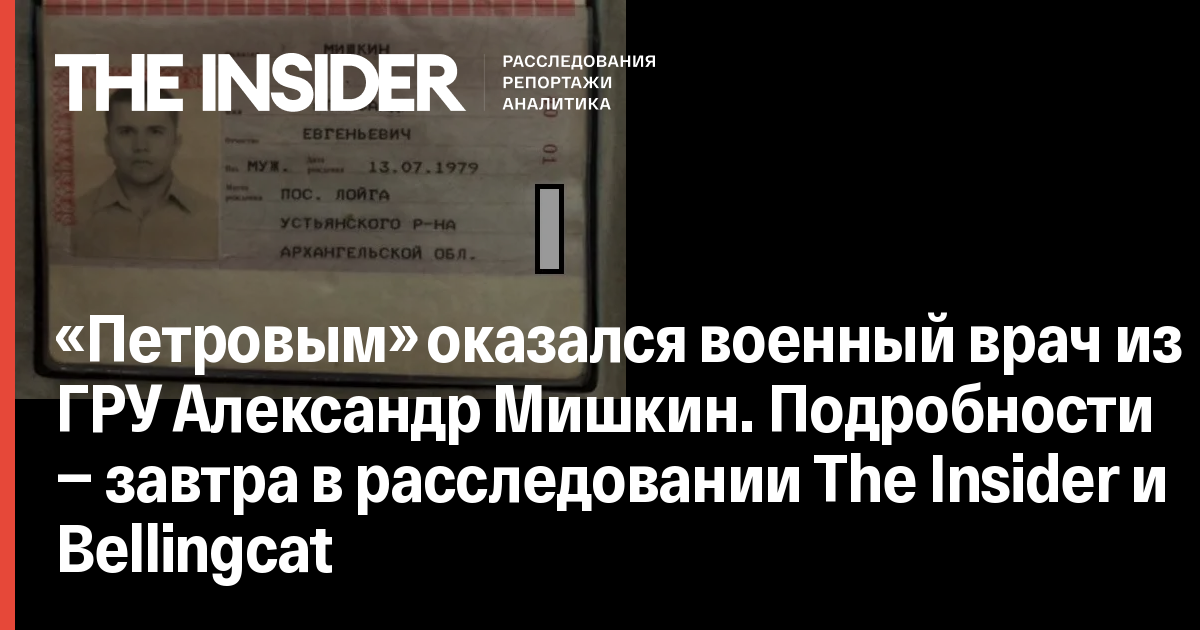 «Петровым» оказался военный врач из ГРУ Александр Мишкин. Подробности — завтра в расследовании The Insider и Bellingcat