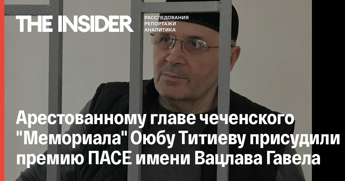 Премию Парламентской ассамблеи Совета Европы имени Вацлава Гавела за работу в области защиты прав человека присудили главе филиала правозащитного центра «Мемориал» в Грозном Оюбу Титиеву. Об этом объявила председатель ПАСЕ Лилиан Мори Паскье, передает «Интерфакс».