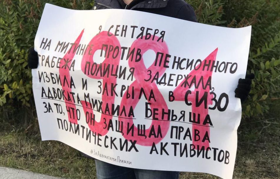 9 сентября, в день всероссийской акции против пенсионной реформы, объявленной оппозиционным политиком Алексеем Навальным, Михаил Беньяш был задержан и избит в Краснодаре. Известного адвоката превентивно задержали, когда он направлялся на несогласованный митинг для оказания юридической помощи задержанным и избили в отделе полиции.