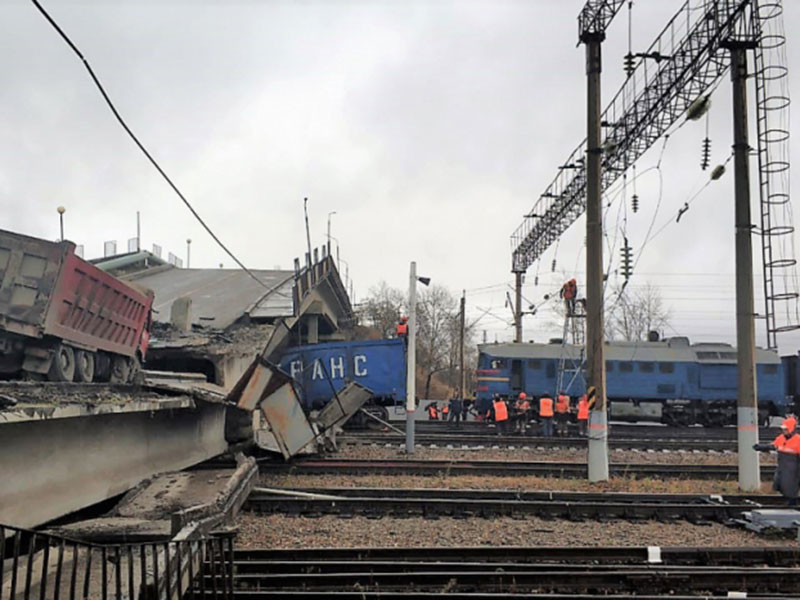 Представители РЖД опровергли сообщение компании "Новотранс" о том, что опоры автомобильного путепровода на станции Свободный обрушились вследствие прохождения тяжеловесного грузового поезда.