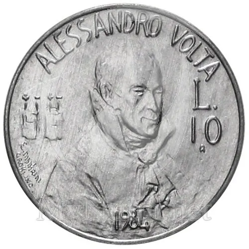 Пастер изображен также на монете Сан-Марино (20 лир, 1984, алюминиевая бронза, тираж 65 тыс. экз.). Эта монета (рис. 10) — одна из девяти монет так называемого Научного выпуска (см. статью «Химия и химики на монетах мира — 3»). А на монете 10 лир этого же выпуска изображен Вольта (рис. 11). Итальянский ученый Алессандро Вольта (1745–1827) считается физиком, однако и для химии он сделал немало: в 1776 году исследовал болотный газ (метан) и установил, что при сгорании он образует углекислый газ. В историю науки Вольта вошел как создатель первого химического источника постоянного тока — так называемого вольтова столба. Это открытие позволило изучить процессы электролиза, открыть с их помощью многие химические элементы.