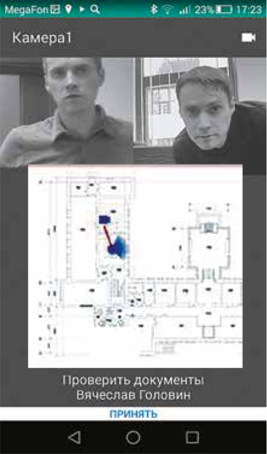 «Созданное решение позволяет передавать тревожные извещения и сигналы управления сотрудникам ГБР (групп быстрого реагирования), поступающие от системы видеоидентификации лиц и других систем видеоаналитики (оставленные предметы, проход в запрещенную зону и др.), — объясняли в компании. — При передаче оповещений учитывается местоположение сотрудников ГБР, что сокращает время их прибытия. Когда установленная на объекте камера распознает лицо человека, находящегося в "черном списке", охраннику, который находится ближе всего к месту события, приходит тревожное сообщение. Место обнаружения и маршрут отображается на плане здания или территории». Местоположение сотрудников определяется через «носимые терминалы» по Wi-Fi точкам доступа, bluetooth-маячкам либо с использованием GPS/ГЛОНАСС.