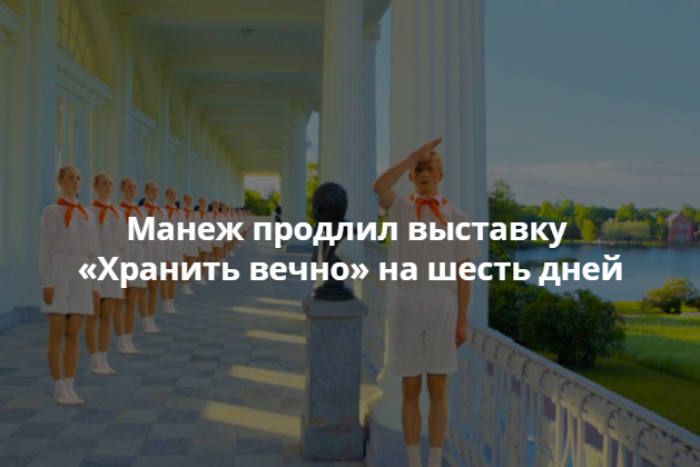 ЦВЗ «Манеж» на Исаакиевской площади в Петербурге продлил сроки работы аудиовизуального выставочного проекта «Хранить вечно». Выставка будет работать ежедневно с 10 по 15 октября с 11:00 до 21:00.