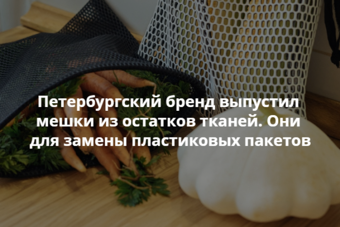 Петербургская марка одежды NNedre выпустила эко-мешки и сумки-шопперы, которые можно использовать вместо пластиковых пакетов. Это экологическая инициатива, связанная с проблемой переработки остатков и защитой окружающей среды от пластика.