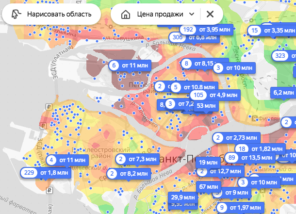 «Яндекс» запустил интерактивную карту цен на жилье в Петербурге