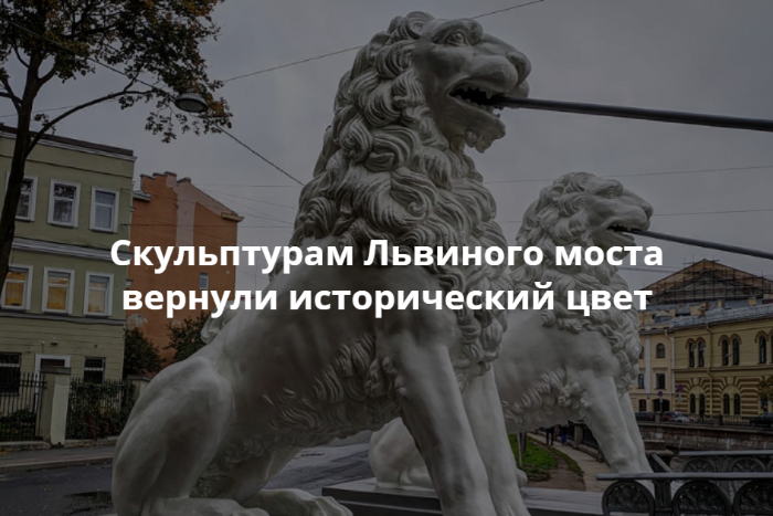 В Петербурге после реставрации открыли Львиный мост через канал Грибоедова. Скульптуры львов почистили и покрасили в исторический цвет — белый с примесью охры.