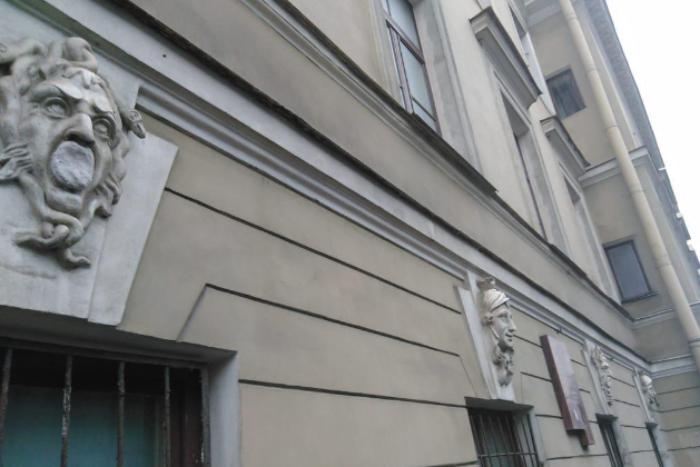 Неизвестный заштукатурил рты маскаронам горгон на доме Бенуа