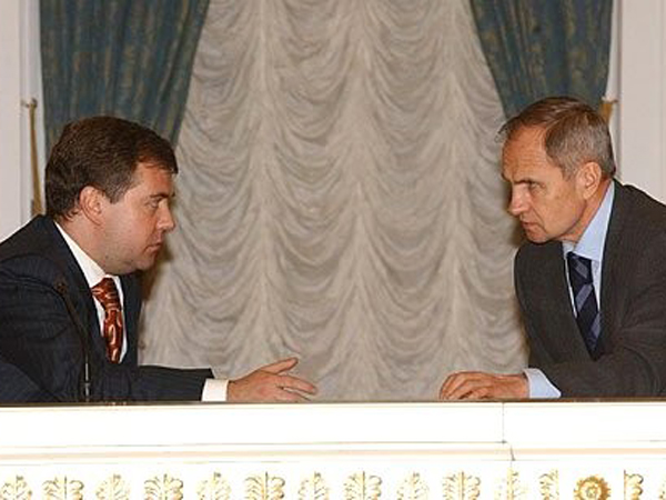 Дмитрий Медведев и Валерий Зорькин в 2003г. kremlin.ru Плюс еще тот факт, что Зорькин с тех пор очень серьезно эволюционировал, как и многие российские общественные деятели. Если в 1990-м году это был профессор, которого поддерживали демократы, то сейчас это традиционалист, выступающий в качестве одного из основных наших публичных критиков Европейского суда по правам человека, сторонник приоритета интересов большинства над интересами меньшинства (это очень серьезно выражено в его статье), сторонник опоры на исторические традиции, то есть очень консервативный юрист, для которого Конституция 1993 года выглядит слишком либеральной.