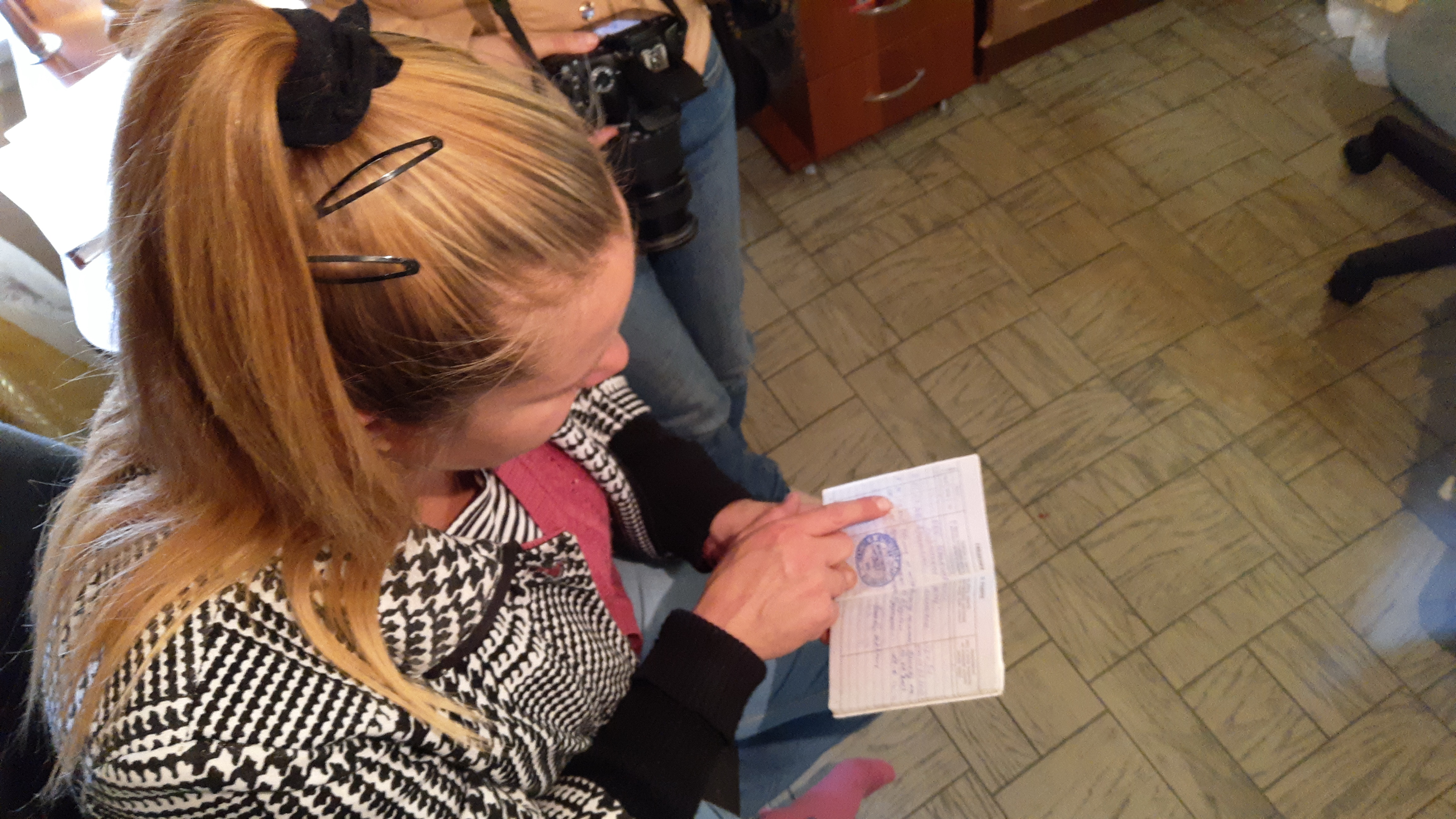 Ольга водит ручкой по ксерокопии протокола: