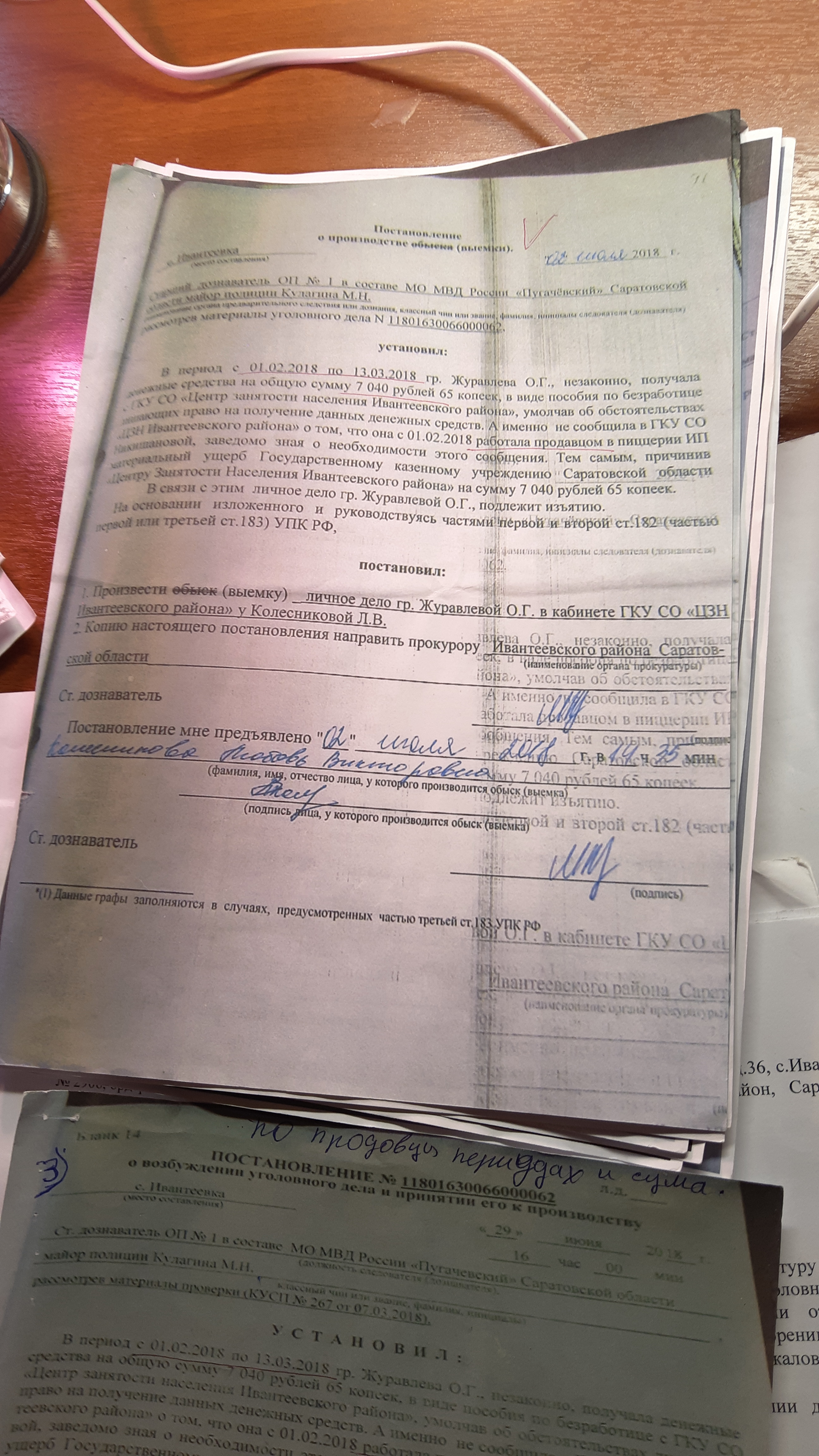 В постановлении о возбуждении уголовного дела (копия имеется в распоряжении редакции) действительно сказано, что Журавлева не предупредила ЦЗН о том, что работала в пиццерии продавцом. Суд, несмотря на свидетельские показания, подтверждающие слова Журавлевой, вынес обвинительный приговор.
