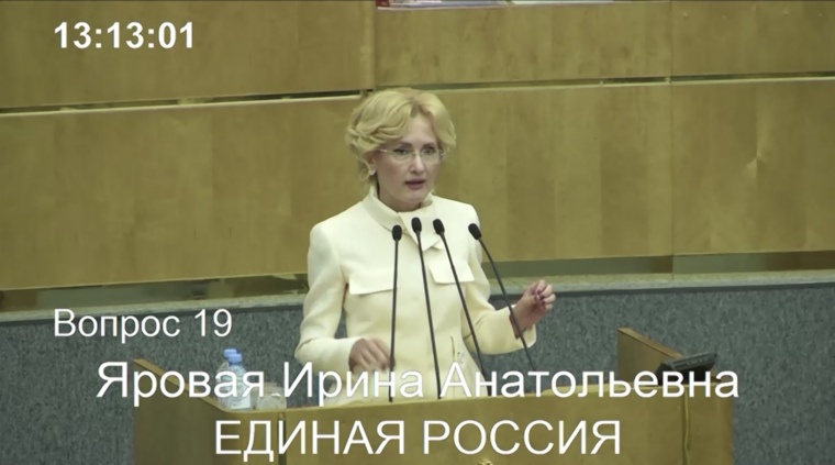 После с содокладом выступила коллега Яровой по фракции «Единая Россия» Марина Мукабенова, которая заявила, что профильный комитет законопроект поддерживает, за исключением отдельных положений, замечания к которым надо будет учесть ко второму чтению.