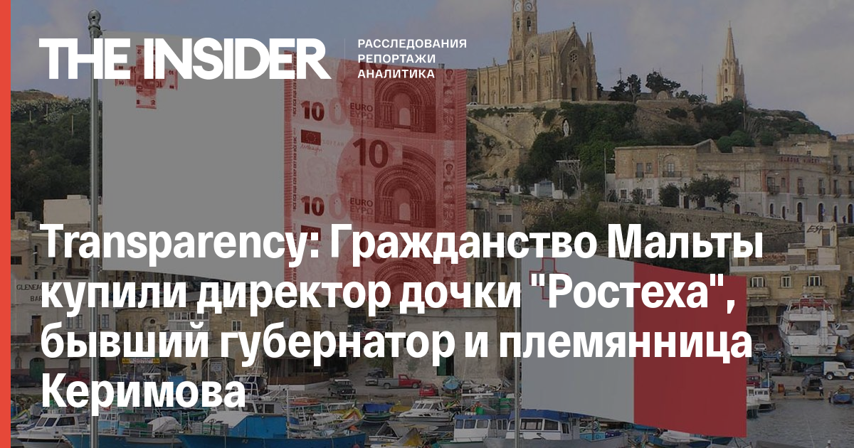Transparency: Гражданство Мальты купили директор дочки "Ростеха", бывший губернатор и племянница Керимова