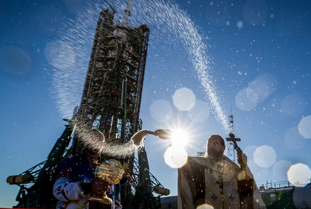 Накануне на аэродром приезжали представители Русской православной церкви (РПЦ), которые освятили ракету и благословили всех присутствующих.