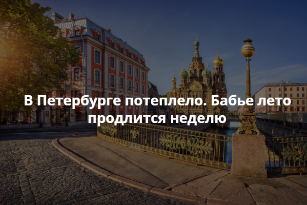 Главный синоптик города Александр Колесов сообщил, что в Петербург пришло бабье лето.