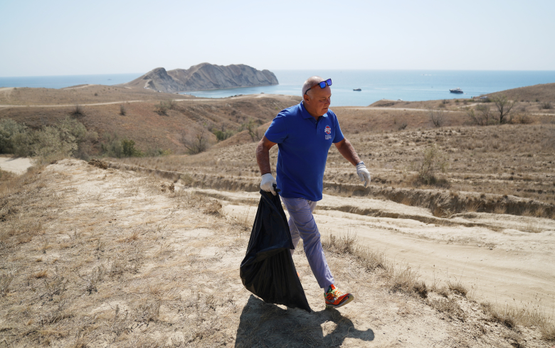 Дмитрий Киселев во время уборки бухты Тихая в Коктебеле. Фото: Максим Блинов / РИА Новости