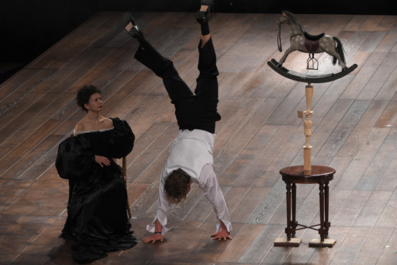 Самое важное — чувствовать струну между залом и публикой. Путем игры натяните струну. Часто через три-пять минут после начала спектакля можно разочароваться — не натянули. А вот Лепаж натягивает, и я не понимаю, когда он успевает это сделать. Вроде еще ничего не произошло, а струна натянута. Раньше считалось, что занырнуть вглубь материала — это вершина мастерства. Но сейчас мне кажется, что самое важное — балансировать. Это нужно уметь делать, как жонглировать, петь, танцевать. Уметь входить в роль и выходить из роли, на полной скорости смотреть на себя со стороны, возвращаться. Актер должен уметь рассказывать просто историю.