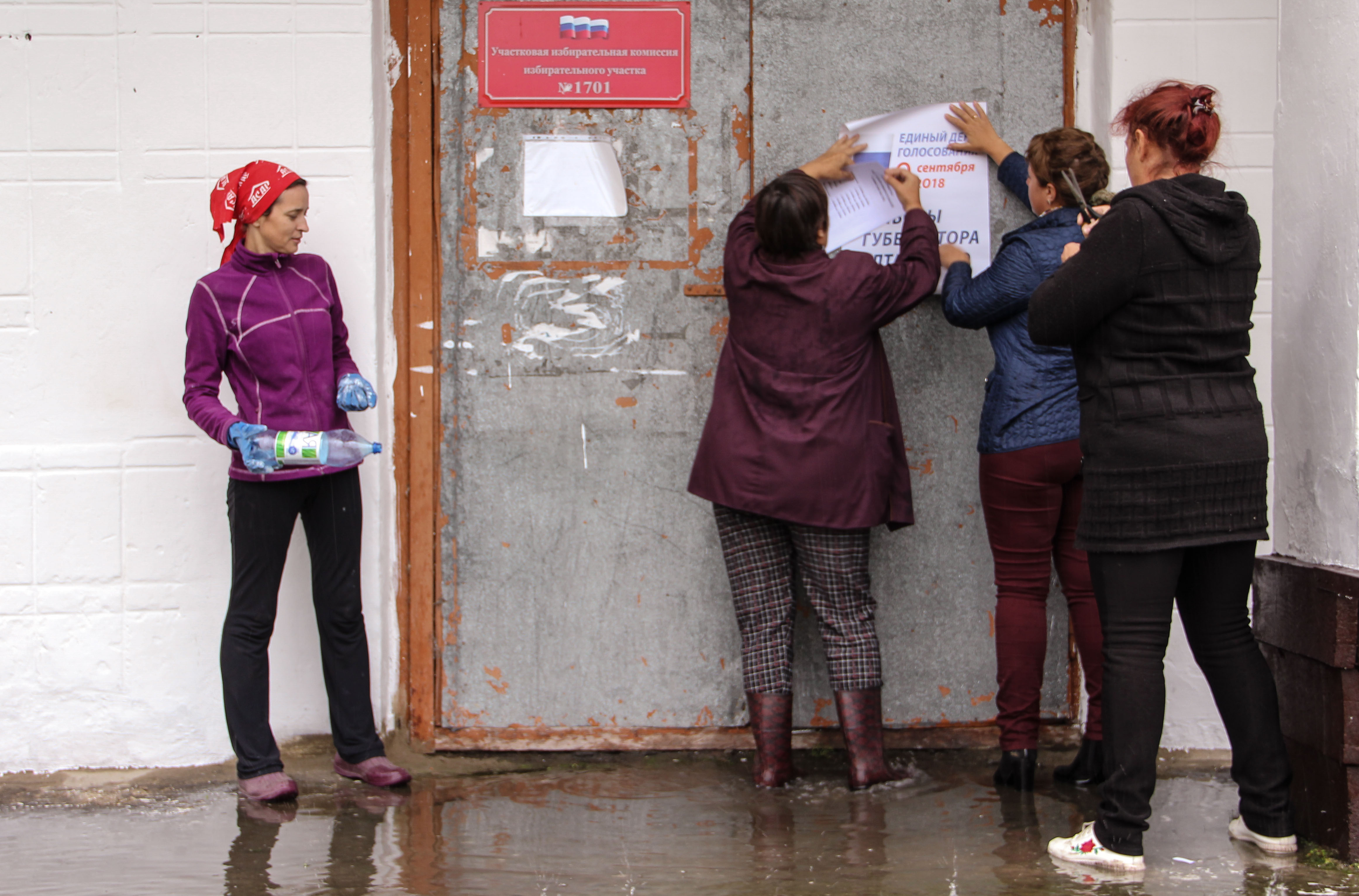 Избирком настроился оборудовать участок в фойе клуба. Вид у фойе совсем не праздничный, а к выборам нужна торжественность, а еще место для селфи. За селфи с избирательного участка губернаторский телеканал обещал много дорогих призов и даже автомобиль. А еще в день выборов на участке должна была появиться красная дорожка. Правда, в случае плохой погоды ведет она прямиком к глубокой луже у входа в здание.