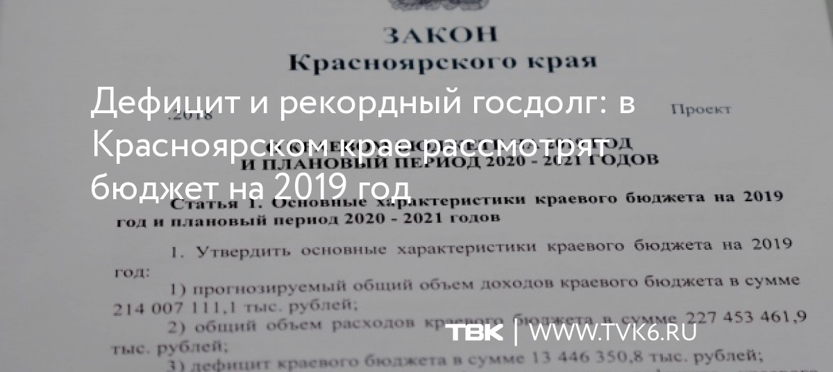 Дефицит и рекордный госдолг: в Красноярском крае рассмотрят бюджет на 2019 год