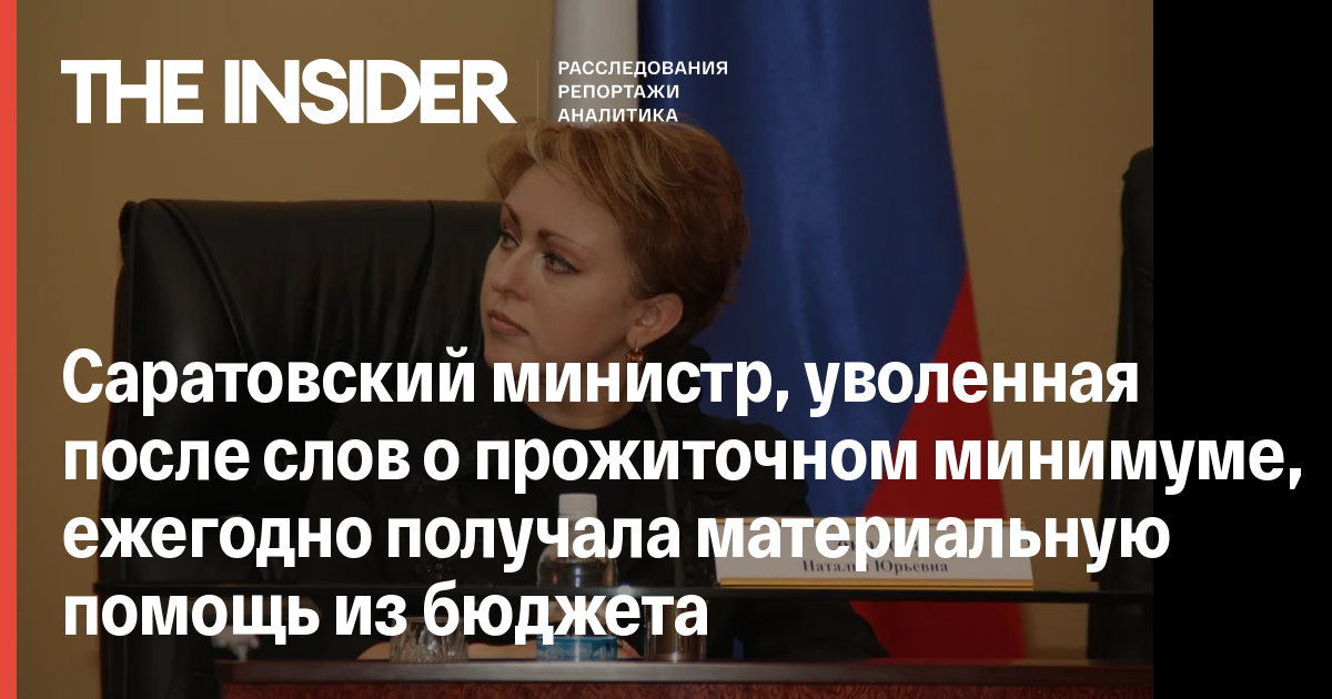 Саратовский министр, уволенная после слов о прожиточном минимуме, ежегодно получала материальную помощь из бюджета