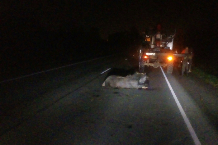 Авария произошла на съезде с Гатчинской объездной дороги переде деревней Ивановка. По предположению очевидцев, животному около года. Самостоятельно оно подняться после происшествия не могло.
