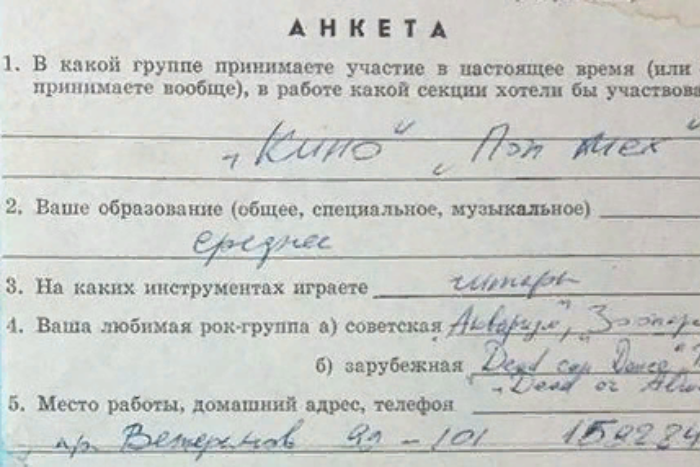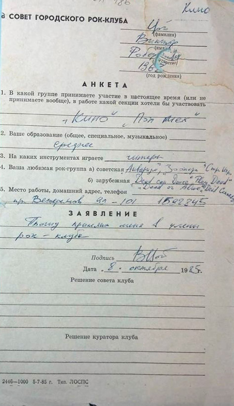 Анкету Цоя на вступление в рок-клуб признали подлинной