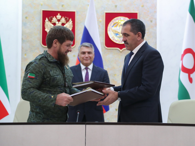 Юнус-Бек Евкуров и Рамзан Кадыров подписали соглашение об установлении границы между Ингушетией и Чечней ingushetia.ru Власти Ингушетии заявляют, что между двумя республиками в рамках договоренности произошел равномерный обмен территориями, хотя, например, анализ «Кавказского узла» показывает, что Чечне отходит значительно большая площадь, чем Ингушетии (хотя территории все равно не заселены).