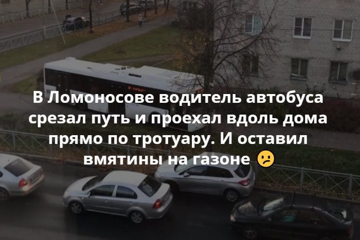 На улице Красного Флота в Ломоносове водитель автобуса срезал путь, проехав мимо дома прямо по тротуару. Видео опубликовали в группе «ДТП и ЧП».