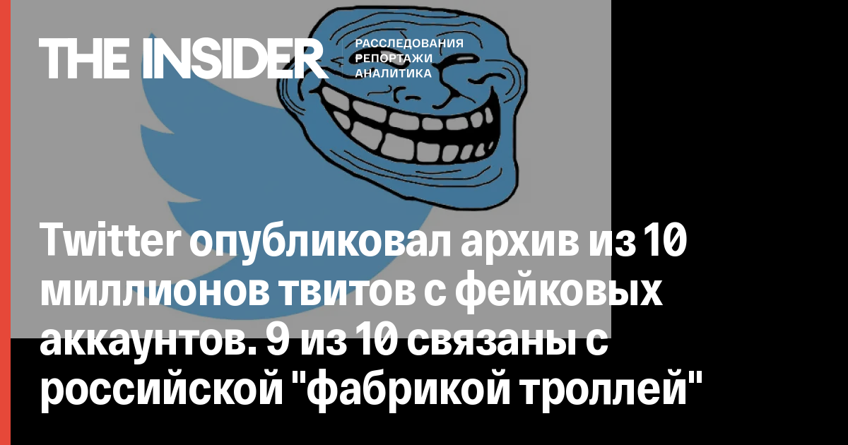 Twitter опубликовал архив из 10 миллионов твитов с фейковых аккаунтов. 9 из 10 связаны с российской "фабрикой троллей"