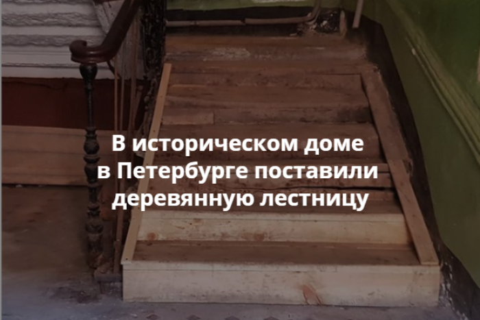 Петербургский риелтор Александр Минаков рассказал в своем инстаграме, что в историческом доме на Мясной улице, 26 рабочие ЖКС заменили лестницу на деревянную.