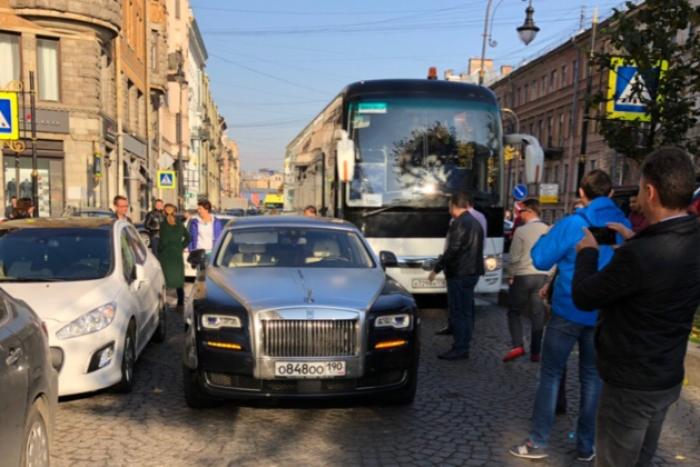 Петербуржцы пожаловались на «Роллс-Ройс», который перекрыл дорогу в центре города. Владелец автомобиля говорит, что машина заглохла