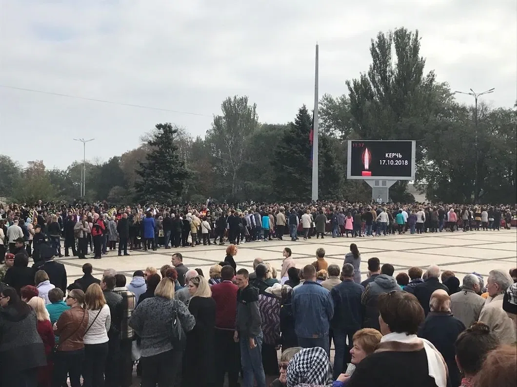 В Керчи на площади Ленина состоялась церемония прощания с погибшими в результате массового убийства в политехническом колледже.