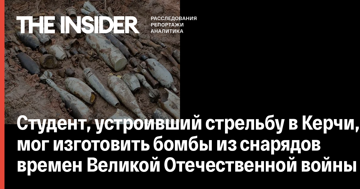 Студент, устроивший стрельбу в Керчи, мог изготовить бомбы из снарядов времен Великой Отечественной войны