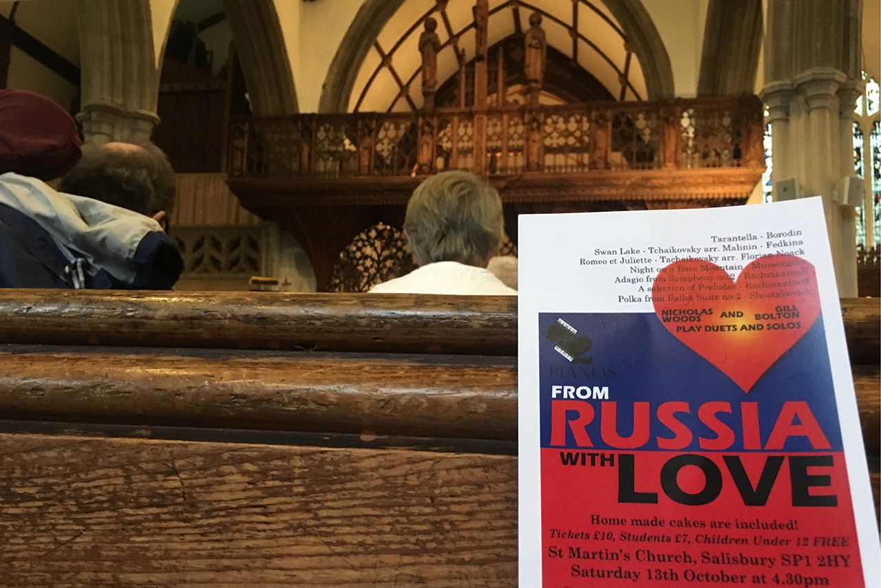 Вечером 13 октября в церкви Святого Мартина, которая находится в десяти минутах ходьбы от знаменитого Солсберийского собора, прошел музыкальный вечер под названием «Из России с любовью». Скромное мероприятие — концерт и угощение домашней выпечкой в небольшой церкви — прогремело из-за названия, которое одновременно отсылает к фильму с Джеймсом Бондом о русских шпионах и напоминает о недавних событиях, произошедших в городе. Снимать сюжет про него приехал даже российский Первый канал. Таблоид The Sun посчитал концерт «издевкой», а его организаторов «нахалами».