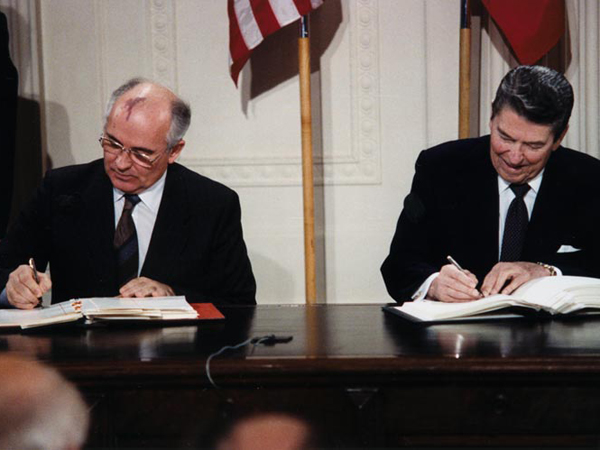 Подписание ДРСМД президентом Рейганом и генеральным секретарем Горбачевым в Восточном зале в Белом доме. 1987г. White House Photographic Office/Wikimedia Commons Кремль потребует объяснений от советника по госбезопасности Джона Болтона, прибывшего в Москву для переговоров. До тех пор заместитель министра иностранных дел Сергей Рябков заявил, что выход США из ДРСМД будет «очень опасным шагом» и что в случае разрыва международных соглашений Россия может принять «ответные меры», но не хотела бы доводить до этого.