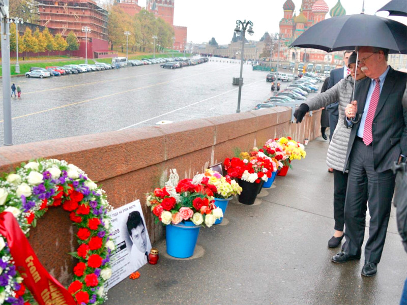 Перед встречей с Путиным Болтон возложил венок на месте убийства Бориса Немцова