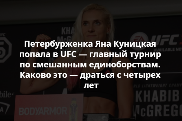 Петербурженка Яна Куницкая с весны 2018 года выступает в крупнейшем турнире по смешанным единоборствам UFC. Последний на данный момент бой девушка провела 6 октября на турнире UFC 229 — там же прошел поединок Конора Макгрегора и Хабиба Нурмагомедова.