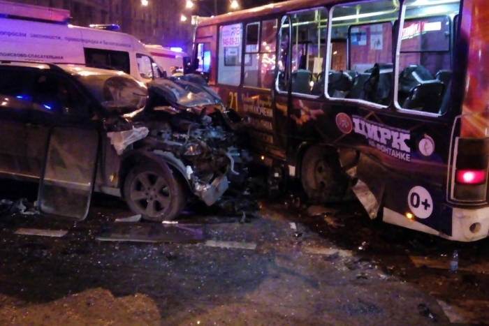 На юге Петербурга BMW врезался в маршрутку. Четыре человека госпитализированы, водитель автомобиля скрылся