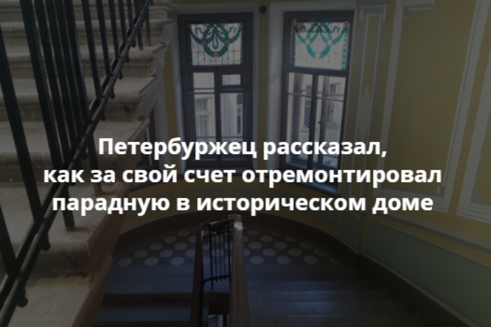 Петербургский экскурсовод Даниил Ягирский рассказал в своем инстаграме, как вместе с семьей отремонтировал свою парадную в доме 1910 года постройки в Петроградском районе.