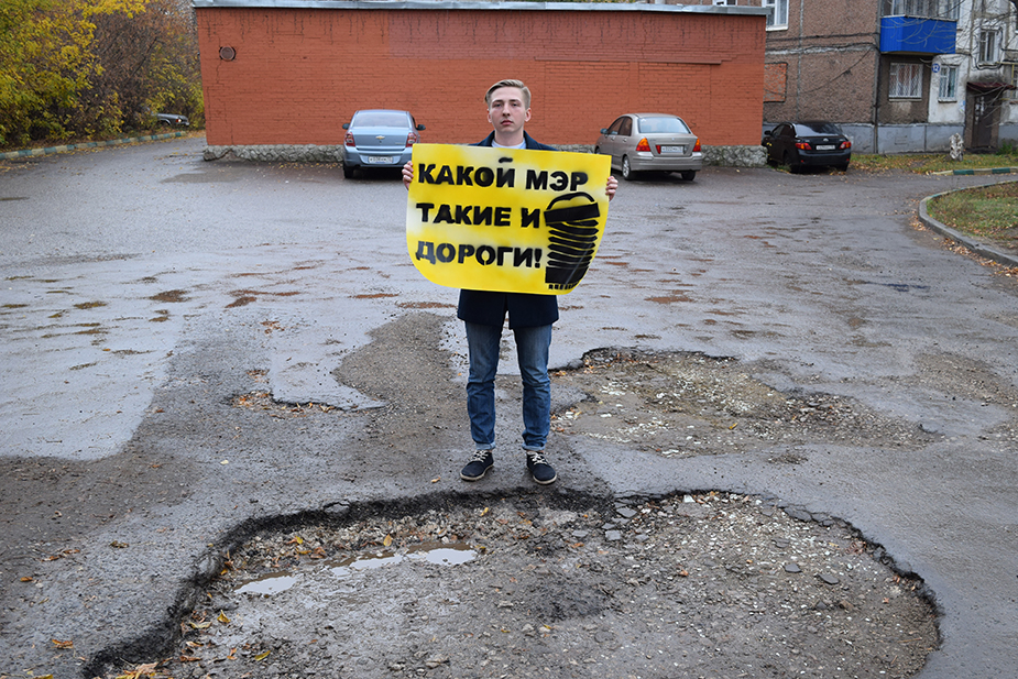 Представитель общественного движения «Время» Игорь Рогов провел 23 октября одиночный пикет в юго-западном микрорайоне Саранска. Свой плакат «Какой мэр, такие и дороги» он разворачивал на участках улиц с разбитым асфальтом, которых не коснулся ремонт перед чемпионатом мира по футболу, сообщил корреспондент «7х7».