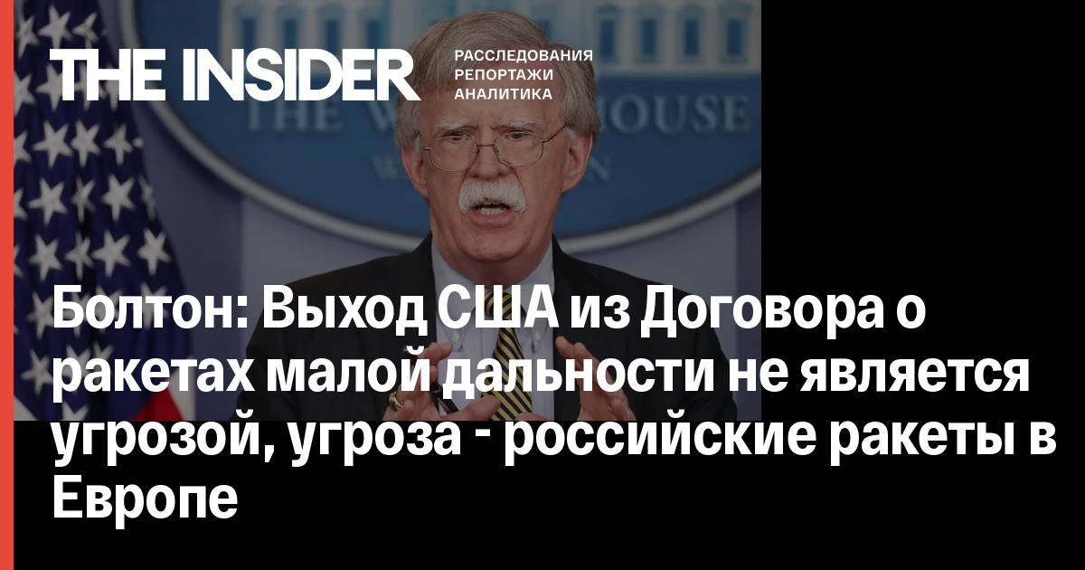 Болтон: Выход США из Договора о ракетах малой дальности не является угрозой, угроза - российские ракеты в Европе