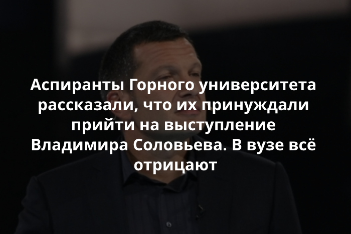 Аспирантов Горного университета попросили прийти на встречу с телеведущим Владимиром Соловьевым в принудительном порядке, рассказали активисты движения «Весна» со ссылкой на учащегося вуза.