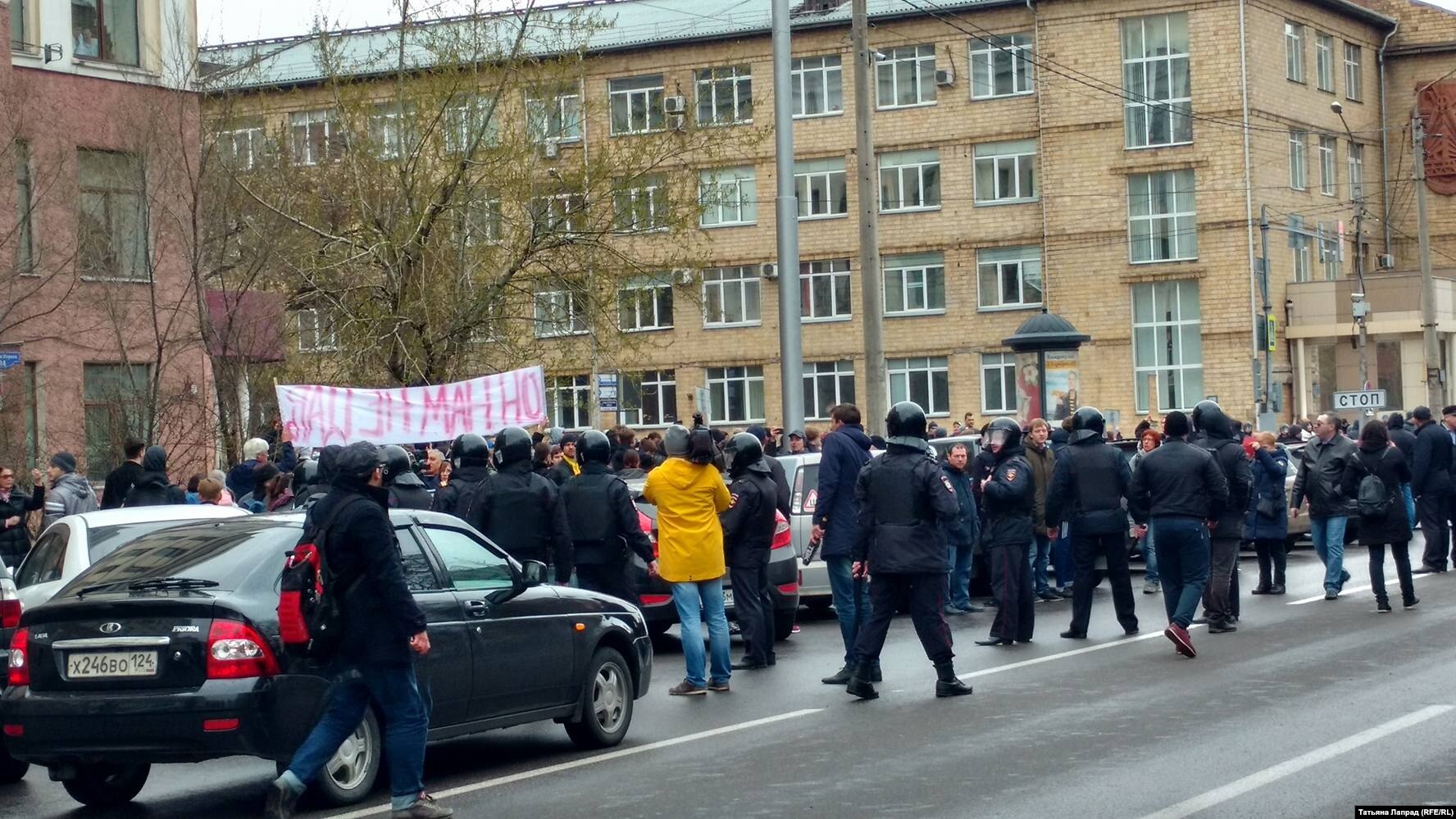 После митинга его участники пошли по одной из центральных улиц Красноярска. Шли по тротуарам, рядом с другими прохожими, проезду транспорта не мешали. Там их и стали задерживать.
